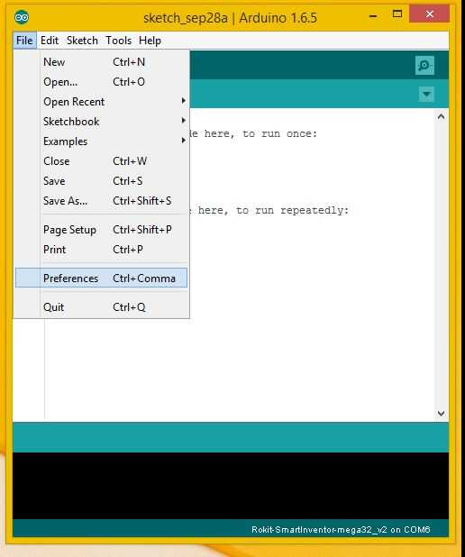 3. ejecutar el IDE de Arduino y haga clic en la pestaña "Archivo" e ir a "Preferencias"