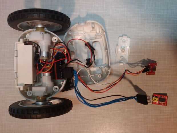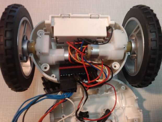 Sube el bosquejo a la Ardweeny y si todo está conectado según el esquema (lo siento, que olvidé incluir el interruptor de encendido en el diagrama) el LED parpadeará en un patrón de latidos del corazón; lo único que quizás tenga que ajustar es la polaridad de los motores va al puente en H. Si cualquiera de los motores van en la dirección opuesta cuando se utiliza el joystick o el teclado, solo invertir la posición de los cables para ese motor.