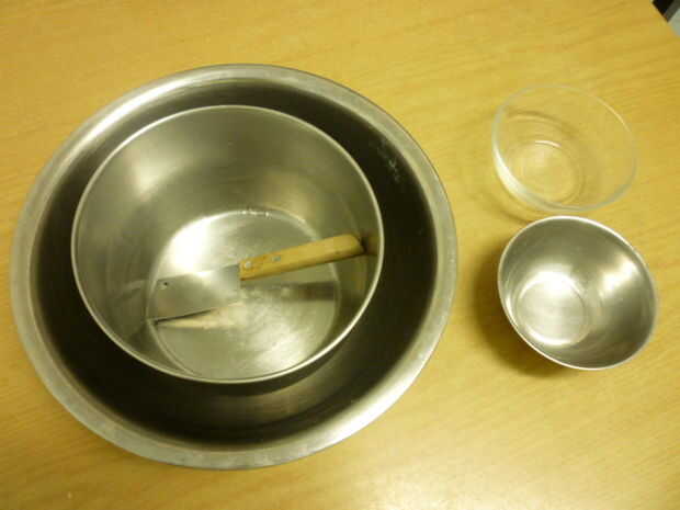 2 tazones de fuente grandes (uno más pequeño, más grande)