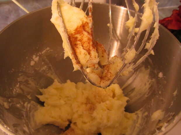 Cuando esté todo el queso crema, mezclar la canela y la vainilla.
