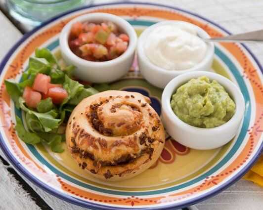 Rollos de media luna relleno de jamón y queso. Perfecto para el almuerzo o un divertido después de la merienda escolar.Ingredientes6 Rollos de cena Rhodes, descongelado a temperatura ambienteaderezo de miel mostaza 2 cucharadas16 lonchas finas jamón