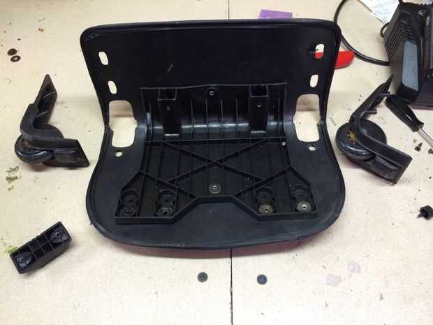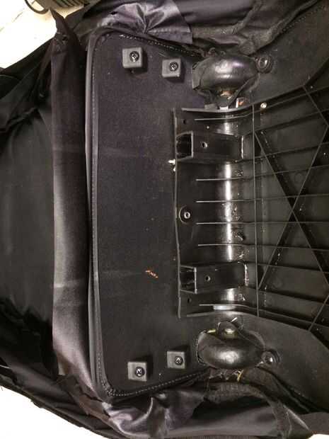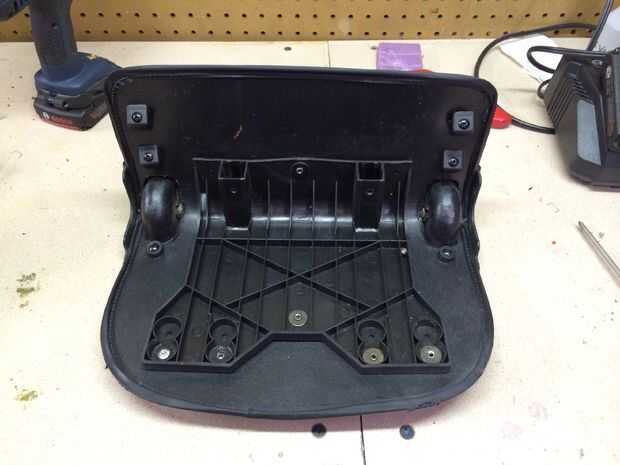 Con los postes de en medio, es mucho más fácil cortar el paño restante para recuperar el marco. Hay tornillos que sujetan los ensamblajes de rueda a través de la tela al bastidor. Una vez que los eliminan, salen las ruedas y el marco es libre de la tela. Una vez que se retiran los componentes, puede montar sin los pedacitos de tela para formar un marco útil para este proyecto.