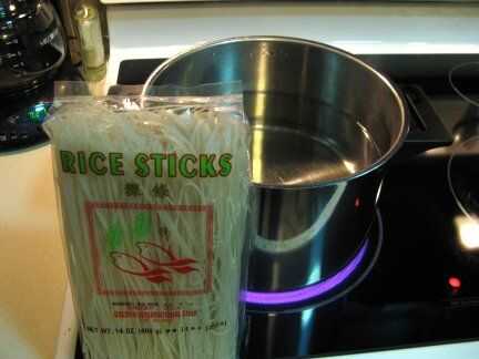 Calentar agua en una olla grande pasta a hervir, agregue los fideos y retire del fuego. Revolver con frecuencia hasta que los tallarines son a mitad de camino hechos, para evitar que se pegue.  Asegúrese de que usted hace no deje hervir los fideos al calor, se convierten en ruido de fondo si haces.