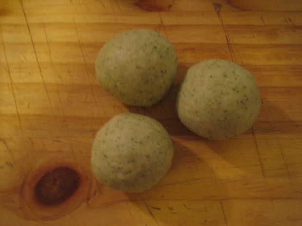 1. Corte pequeñas cantidades de masa y rodar en bolas aproximadamente el diámetro de una cuarta parte