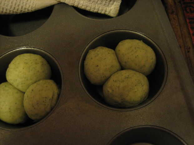 2. Colocar tres bolas en cada taza una lata engrasada muffin
