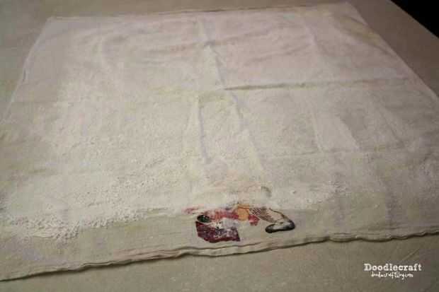 Tener una toalla de té con azúcar glas espolvoreado todo sobre él.