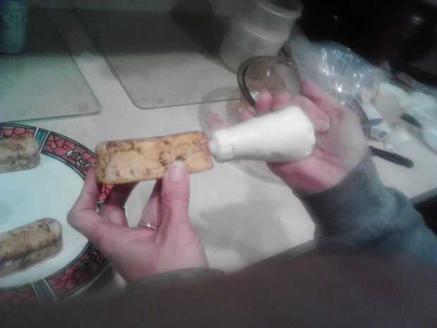Ahora llenan te bolsa guinda e inyectar en ambos lados de los Twinkies. Para terminar tomar la guinda que vino con los rollos de canela y rociar en la parte superior. ¡ Disfrute!