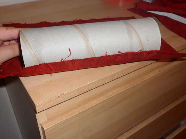 .. .y entonces palillo el rodillo sobre el borde de la tela, no olvides dejar un pequeño exceso de material en ambos lados.