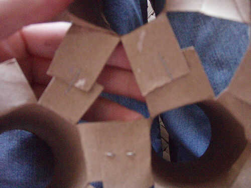 Tomar un tubo de 5 aletas y conecte con la grapadora en cada aleta un tubo con 6 aletas. Siempre va a ser como este todos lo conect 5 con 6, pero no todos lo 6 conect con 5 unos. Recuerde: Usted tiene que hacer este triángulo pequeño en el medio.