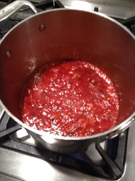 Reducir la temperatura en este punto a fuego lento y deje cocer durante una hora o así, recordar de vez en cuando revolver la salsa, que no permitan arder en la parte inferior.
