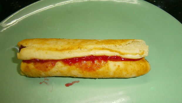 Tomar los rollos de la tarta de la nevera y desenróllela. Cubrir la capa superior del pastel con una cantidad generosa de mermelada.