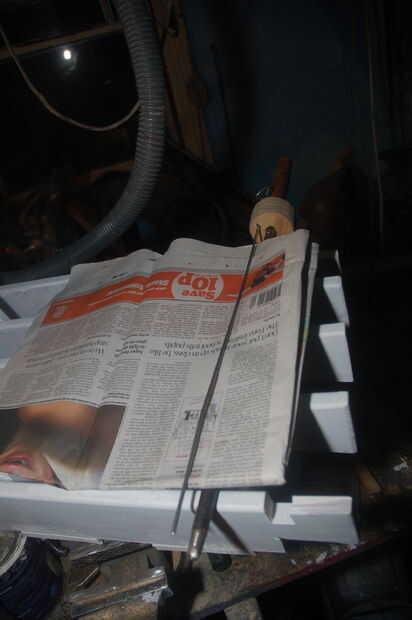 Mi primera idea fue basada en el concepto simple, que el periódico entero ya viene muy comprimido y en una forma lista para activarse con una acción simple en un 'registro'. Yo había pensado en una máquina bastante compleja como un mangle, que rodó el papel en un cilindro, luego utiliza un pistón para tirar fuera de la base, y pasé un tiempo trabajando la manera de hacer esto, antes de darse cuenta de la solución real debe ser tan simple como sea posible, algo la media DIY-er puede golpear hacia arriba o una pequeña empresa puede fabricar con un mínimo de herramientas **.