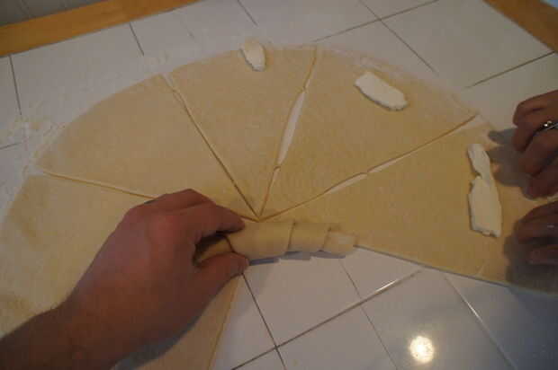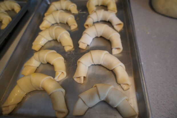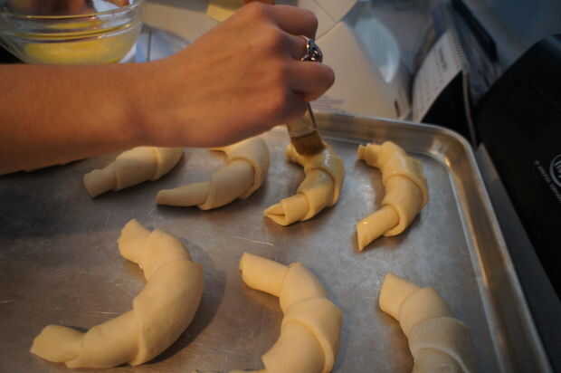 También puede añadir algunos llamarada a los rodillos de plegado en forma de media luna como croissants. Luego batir el huevo pasado con un poco de azúcar y cepille ligeramente en los rodillos antes de ponerlos en el. Esto les dará un agradable aspecto esmaltado.