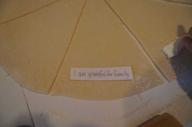 Entonces puede colocar los mensajes en el borde exterior sobre de las rodajas de masa y ruede para arriba. También puede colocar queso u otros rellenos en los rollos de la misma manera, sin embargo, usted probablemente wont quiero hacer ambas cosas como obtener arruinará el mensaje y alguien podrían terminar accidentalmente comerlo.