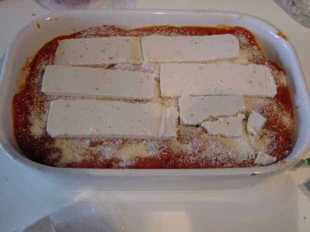• poner queso vegano en rodajas por encima y espolvoree el pan rallado (le da una buena corteza)