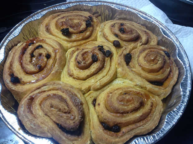 Rodillo y cepillo de mantequilla derretida y espolvorear con azúcar de canela y pasas, rodillo para cerrar