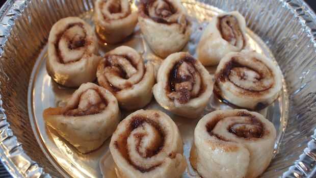 Coloque los rollos obtenidos en una mantequilla ligeramente redonda, torta de hoja.