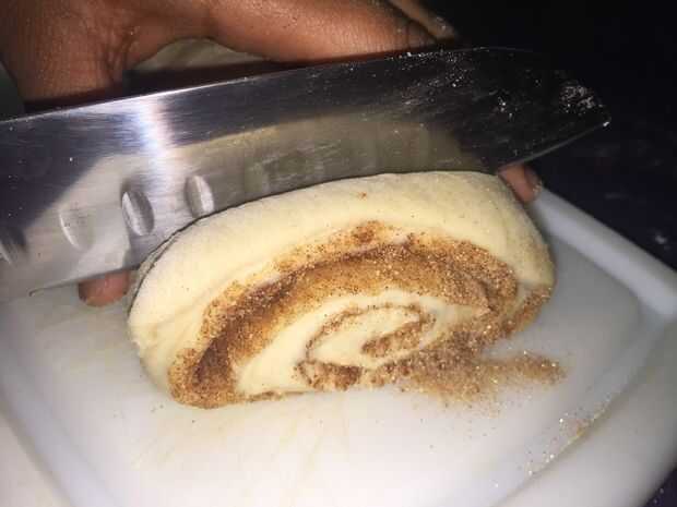 ~ Las costuras para sellar una pizca y que corte en pedazos iguales. Consejo: sin sabor uso seda dental para cortar rollos en vez de un cuchillo.