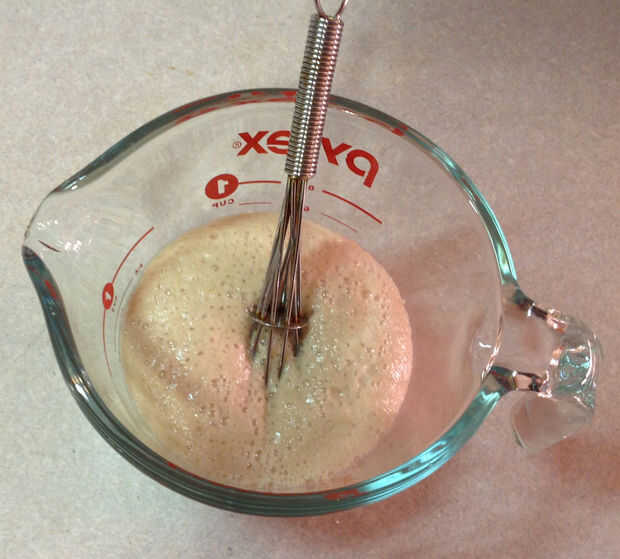 - Mezclar el agua, la levadura y el azúcar. Deje reposar por 10 minutos para hacer una mezcla.
