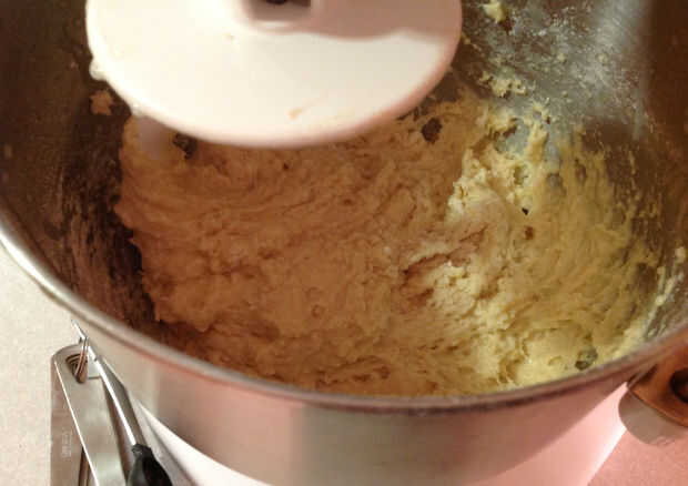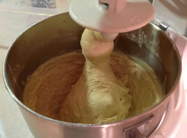 - Mientras que se está formando la mezcla añadir los ingredientes secos para la masa juntos en un mezclador con un gancho para masa.