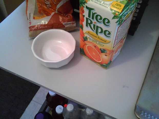 En un pequeño tazón de fuente lugar aproximadamente 1 cucharada a 1 1/2 cucharadas de azúcar moreno. Mezcla de 1/4 a 1/2 cucharadita de jugo de naranja. No desea que el esmalte sea muy acuosa, pero no quiere que sea gruesa. Cuchara sobre los rollos cuando salen del horno.