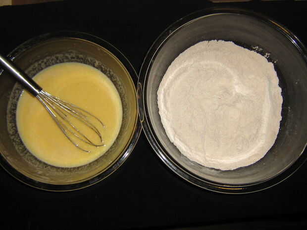 4-romper y batir los tres huevos - agregue a la mezcla.
