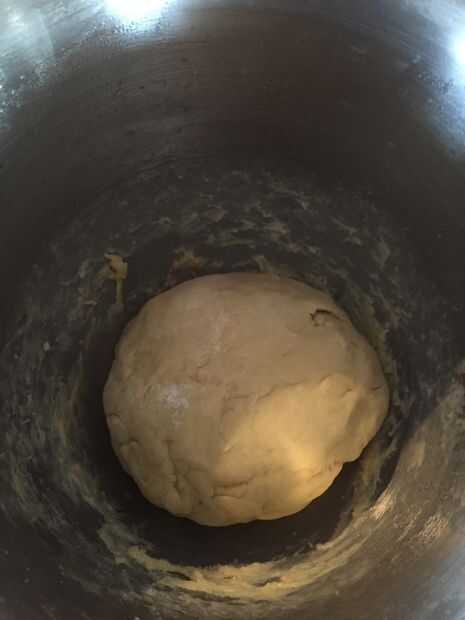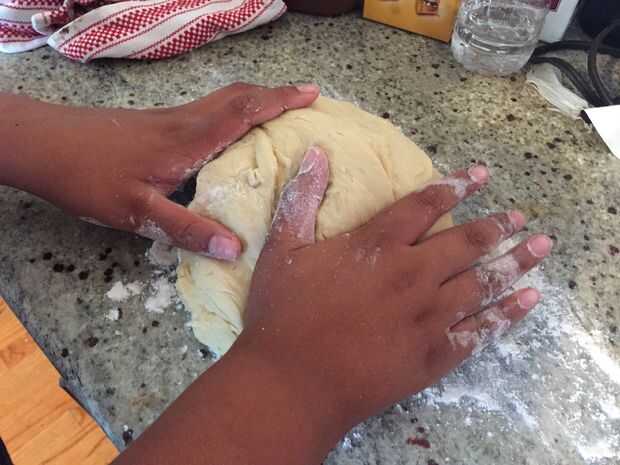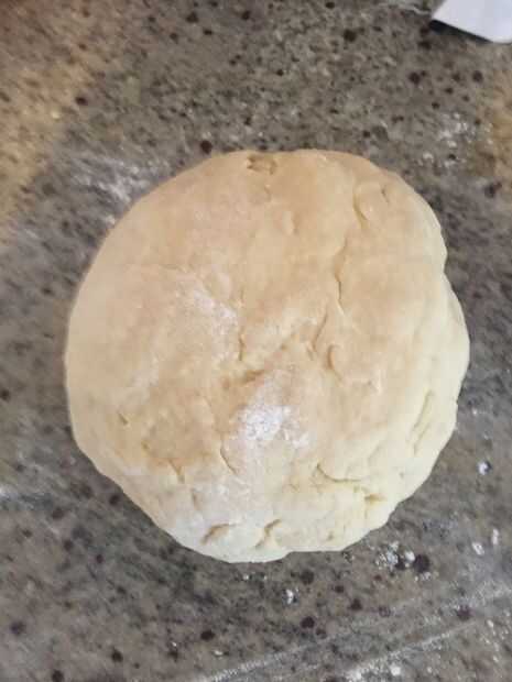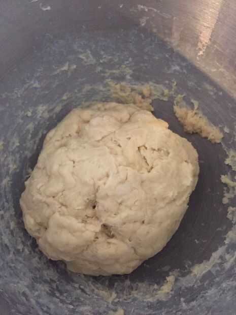 Cuando la masa empieza a hacerse como masa (pegajoso), extender la harina en tu contador y amasen la pasta hasta que ya no es pegajoso.