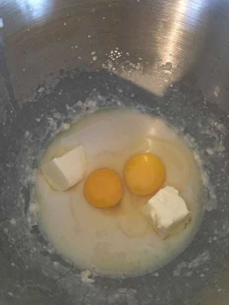 A la mezcla de rodillo después de que se realiza sentado y es más esponjoso que antes. Mezclar todo (con la batidora eléctrica).