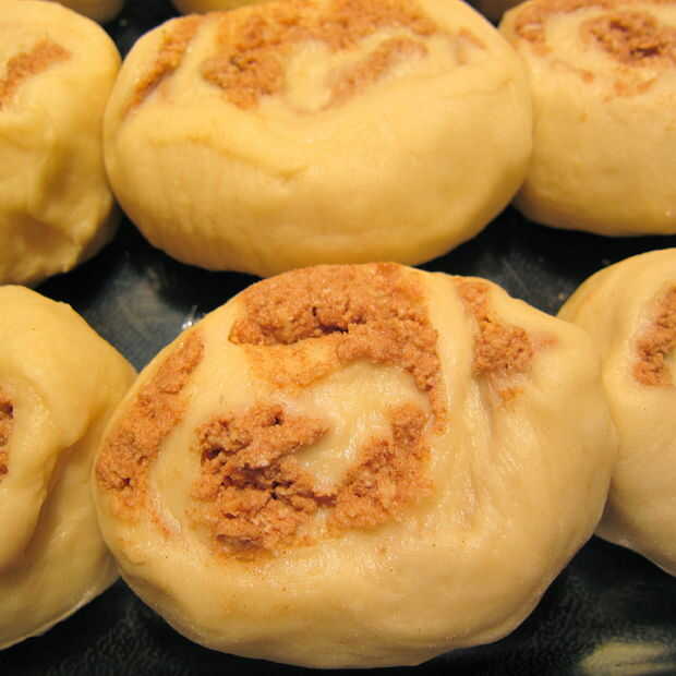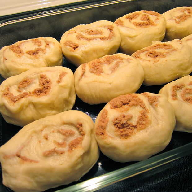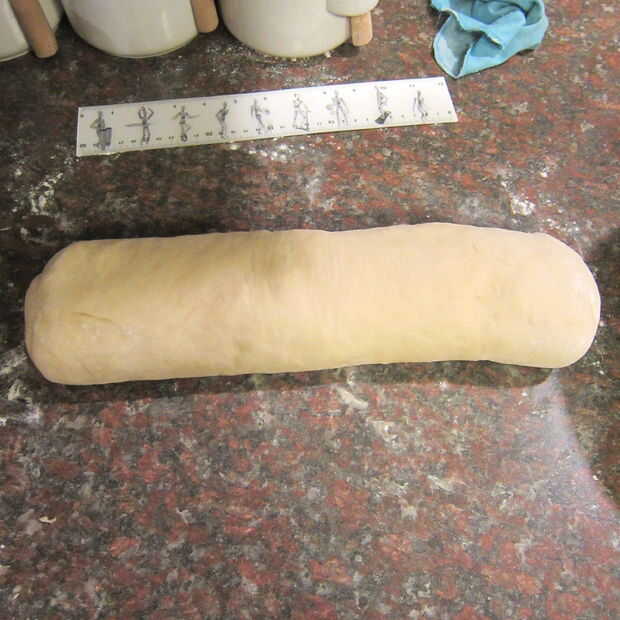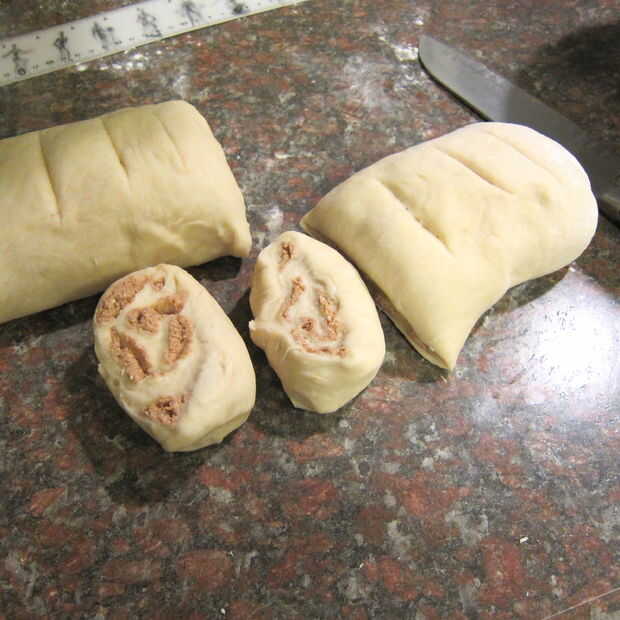 Puntuación y cortar troncos en 12 trozos iguales. Arreglar en una 9 x 13 con mantequilla hornear. Cubra con envoltura plástica.