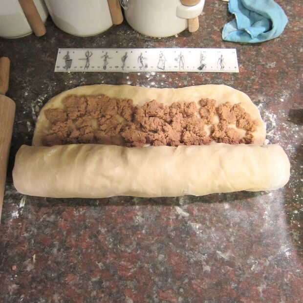 Rodillo la masa a partir de un extremo y pizca la costura bien para sellar.