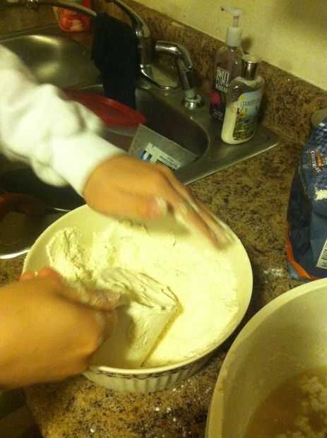 Bien aquí viene las partes muy tareas tediosas y gratificantes de esta comida; la elaboración de los rollos de canela. Como se mencionó anteriormente en los ingredientes, se necesita la harina, huevos, manteca, azúcar, agua tibio y salada.