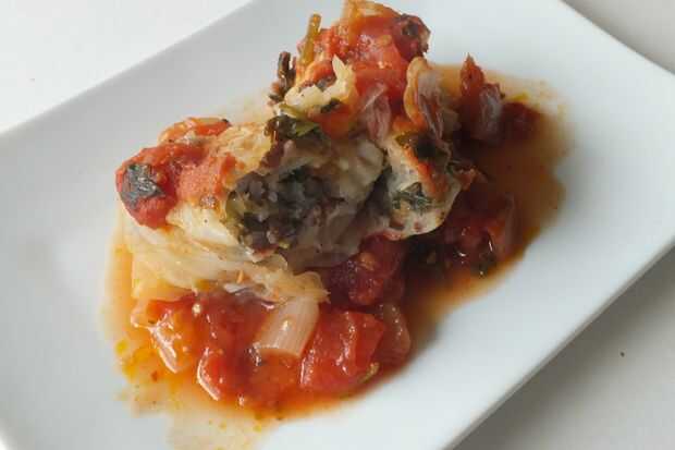 Este súper alimento: rollitos de col, se aparean con arroz moreno y arroz rojo para hacer una comida excelente clima frío!