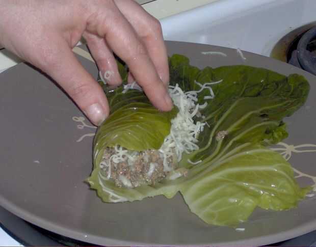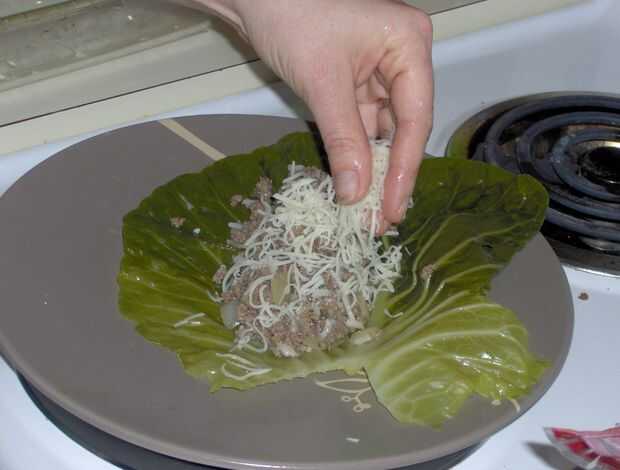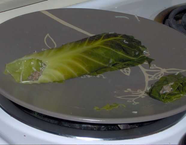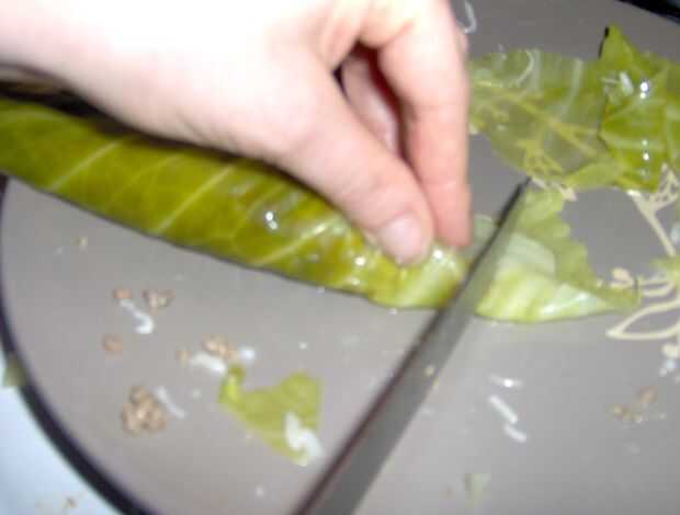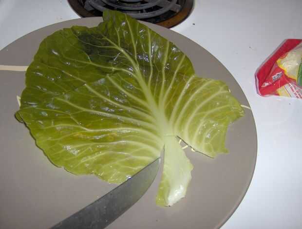 cortar la col y col en el extremo que no contiene relleno restantes.