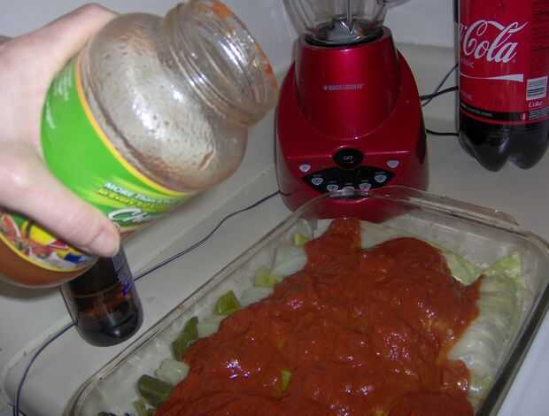 relleno salsa vacías tarro 1/2 lleno de agua, cubierta y agite.