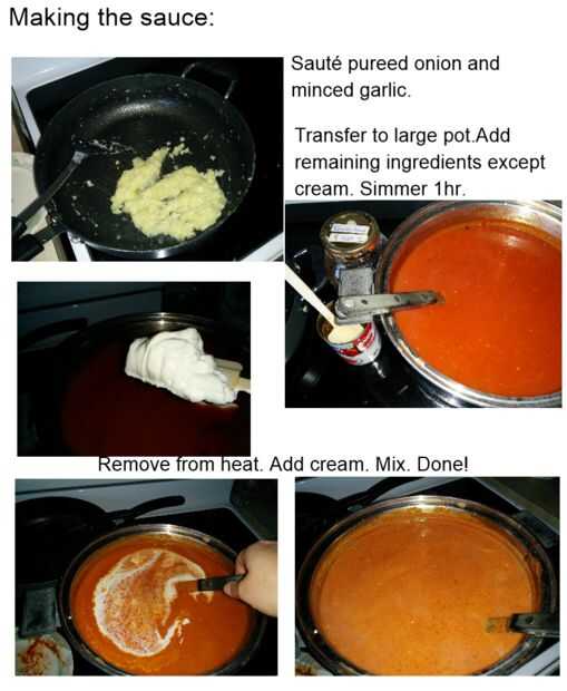 Transferencia de la cebolla y el ajo en una olla grande. Añadir los demás ingredientes excepto la crema o crema agria. Poner el contenido de la olla a hervir y luego reducir el fuego a bajo y deje que la salsa a fuego lento aproximadamente una hora. Revolviendo de vez en cuando.