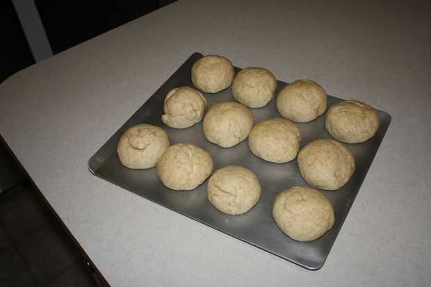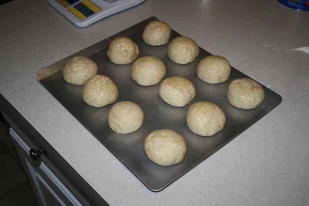 Forma redonda de bolas. Me gusta dar mis rollos una capa de manteca para que tengan una corteza suave. Si omite este paso, engrasar ligeramente la bandeja para hornear. Coloque uniformemente en una placa para horno.