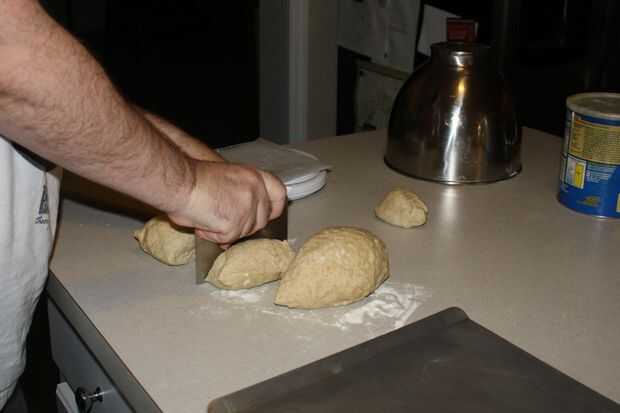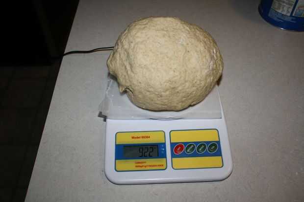 En orden para mis rollos que un tamaño constante, me gustaria pesar la masa y luego dividir el peso por el número de rollos que quiero. En este caso, 922 gramos de masa dio lugar a 12 rollos que fueron cerca de 77 gramos. No, no tienes ser preciso pero después de años de fabricación de rodillos de diferentes tamaños, decidí ser más consistentes.