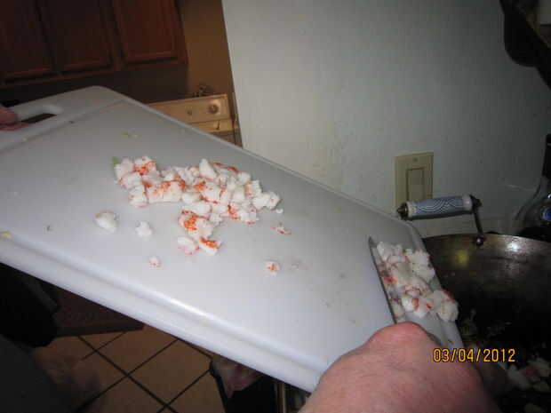 Ahora baje un poco el fuego al medio y pliegue en el cangrejo como sustancia.