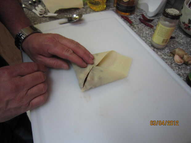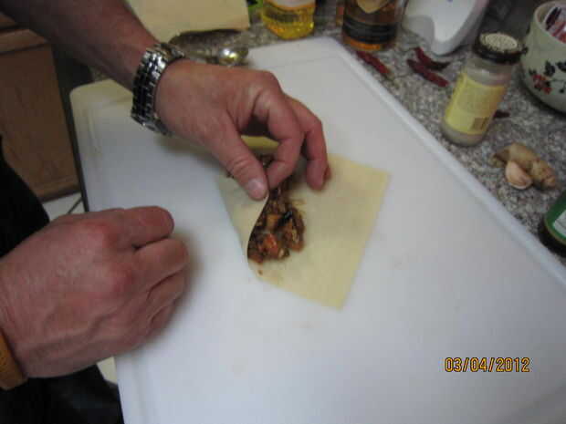 Poner unas 3 cucharadas de relleno en el centro hacia la parte inferior.