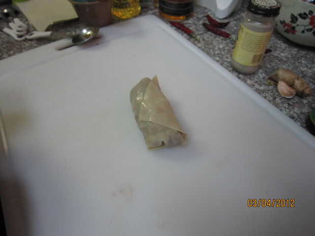 Enrollar la parte inferior y doble los lados como un burrito y continuar rodando encima de.