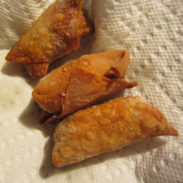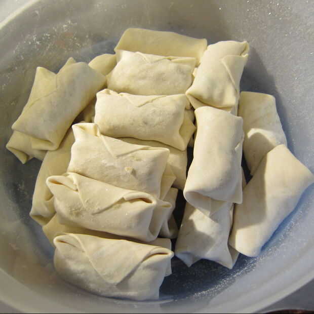 Rollos de huevo retirar del congelador y preparar una sartén profunda con aceite calentado a 350 grados F. Una vez que el aceite es a gota de la temperatura en 5-8 rollos de huevo y freír a un dorado crujiente. Retire del aceite y que el exceso de aceite escurrir sobre una toalla de papel.