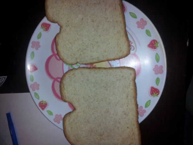 colocar dos trozos de pan, de lado a lado, en la placa.