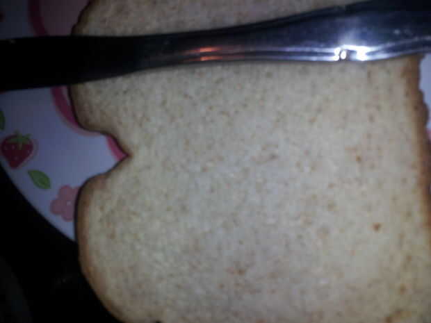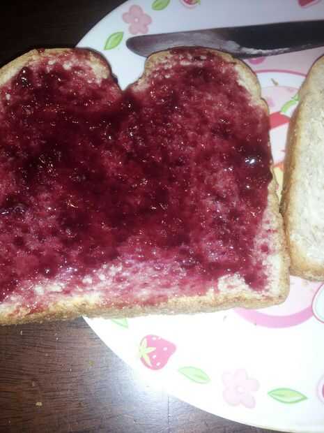 abrir la jalea. utilizando el cuchillo separó la jalea en el pedazo de pan a la derecha. Cierre la tapa de la jalea.