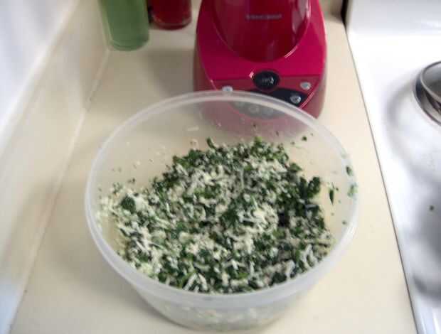 mezcla los quesos, 3/4 de espinacas, huevo yema de huevo, sal y pimienta juntos en un bol grande...