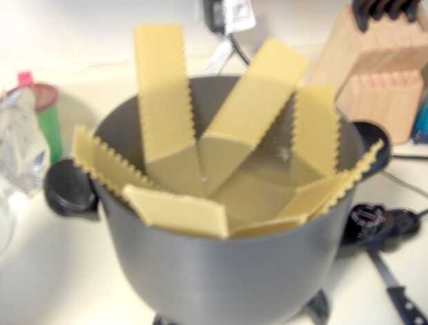 cocer la lasaña durante 10-15 minutos, hasta que se ve 'al dente'