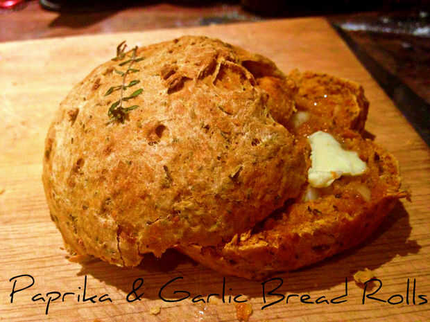 Hay una receta de pan de pimentón estilo que origina de hambre, y con una gran cantidad de la cocina húngara rico en variedad de pimentón y con él he tomado mucha inspiración a partir de ahí. También he usado tomillo dentro el pan con el sabor y acompañado con mantequilla derretida y ramitas de tomillo.