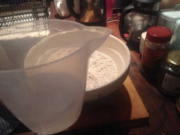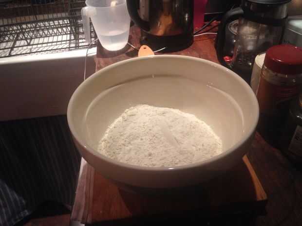 Cuadro 1. Peso 500 g de harina fuerte en a un recipiente lo suficientemente grande para acomodar el resto de ingredientes.