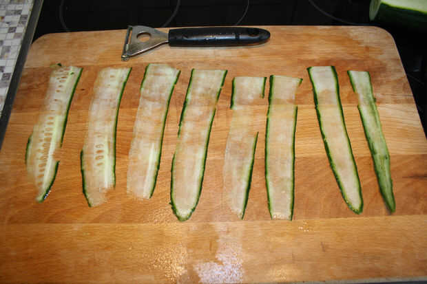 Lavar el pepino. Ahora estrellas lo pelado, pero sólo de un lado! (cuadro 1)