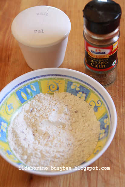 Rollos de pescado Cajun con palitos de vegetales y flores de calabacín fritas (2 / 7 paso)