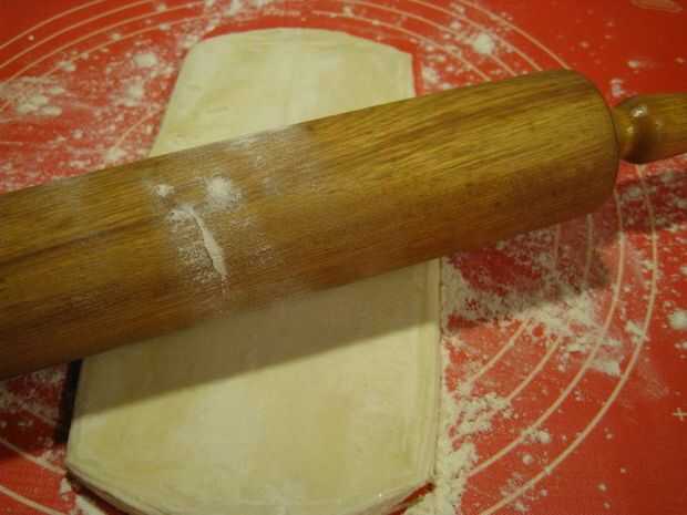 Estirar en una placa pastelera enharinada y mide 12 pulgadas por 14 pulgadas.